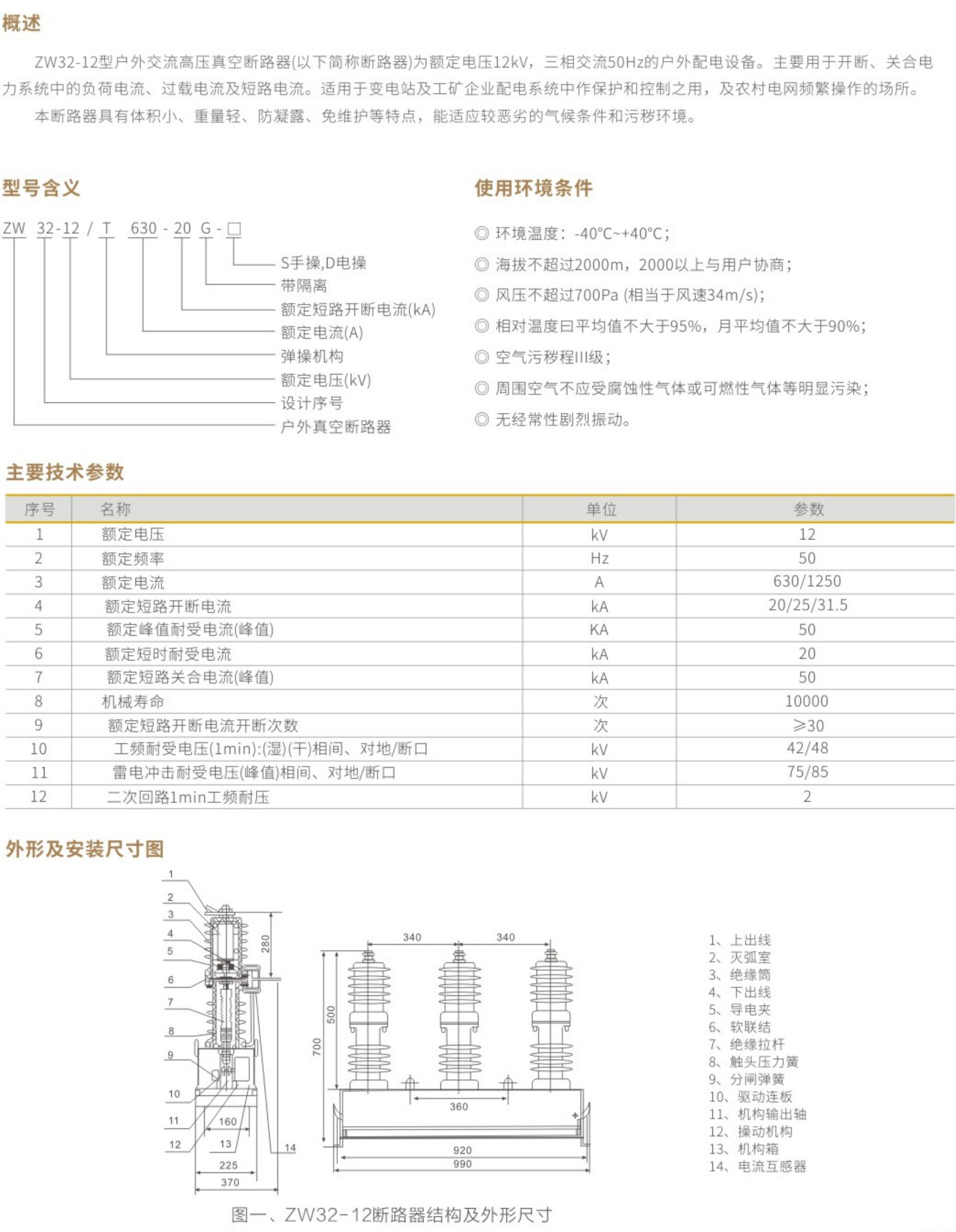 ZW32-12户外交流高压真空断路器