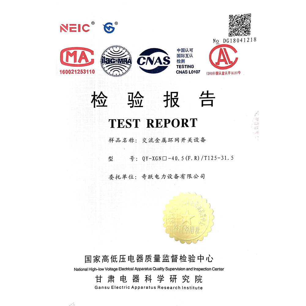 QY-XGN□-40.5(F.R)/T125-31.5交流金属环网开关设备 检验报告