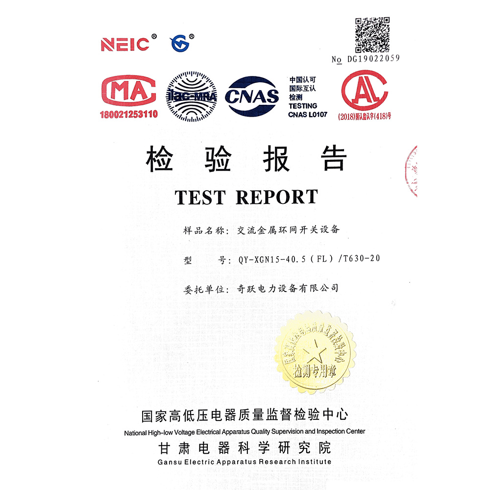 QY-XGN15-40.5(FL)/T630-20交流金属环网开关设备 检验报告