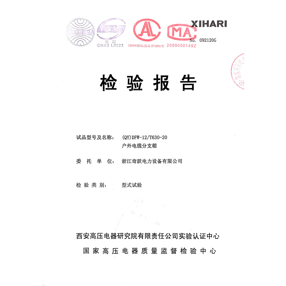 (QY)DFW-12/T630-20户外电缆分支箱 检验报告