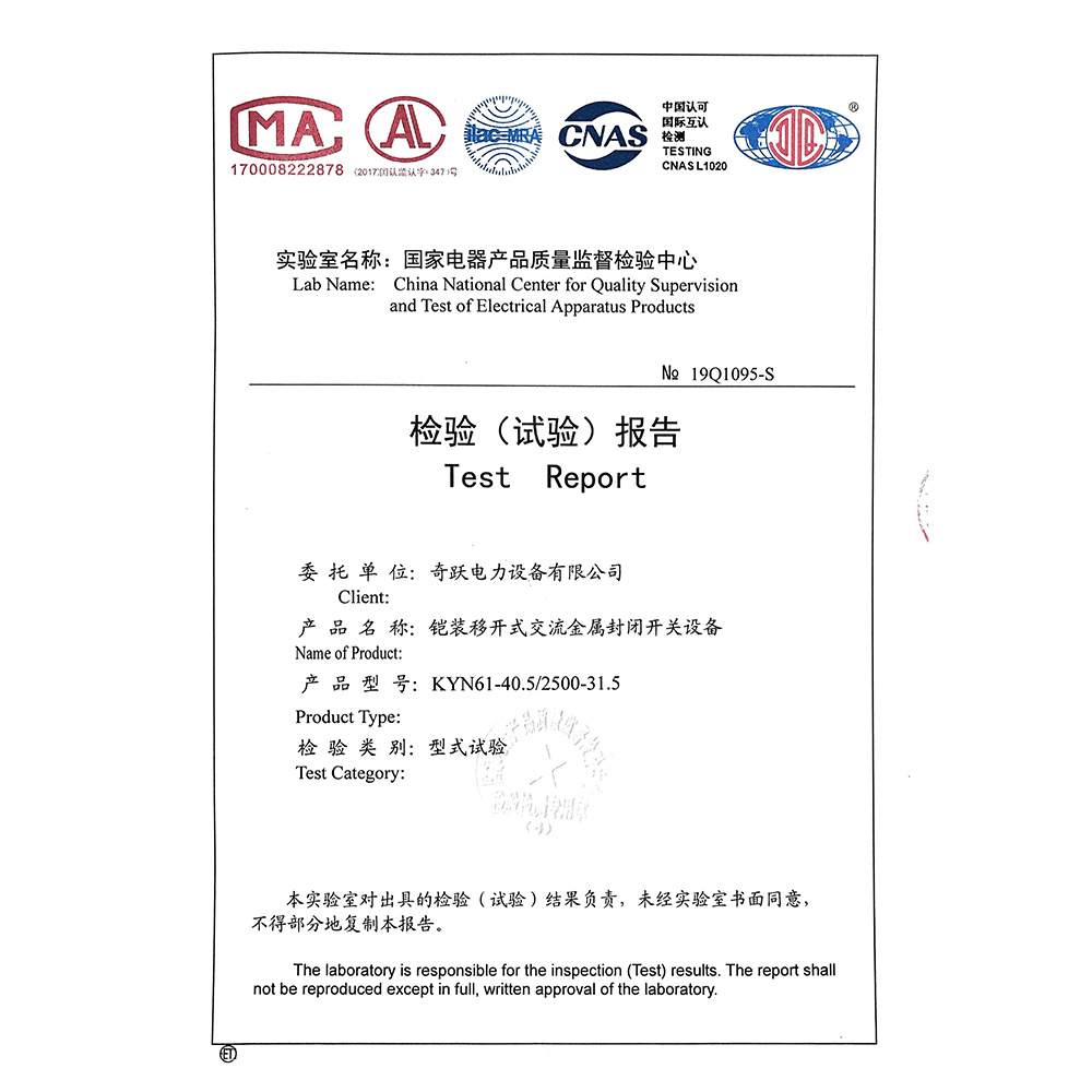 KYN61-40.5/2500-31.5铠装移开式交流金属封闭开关设备 检验报告