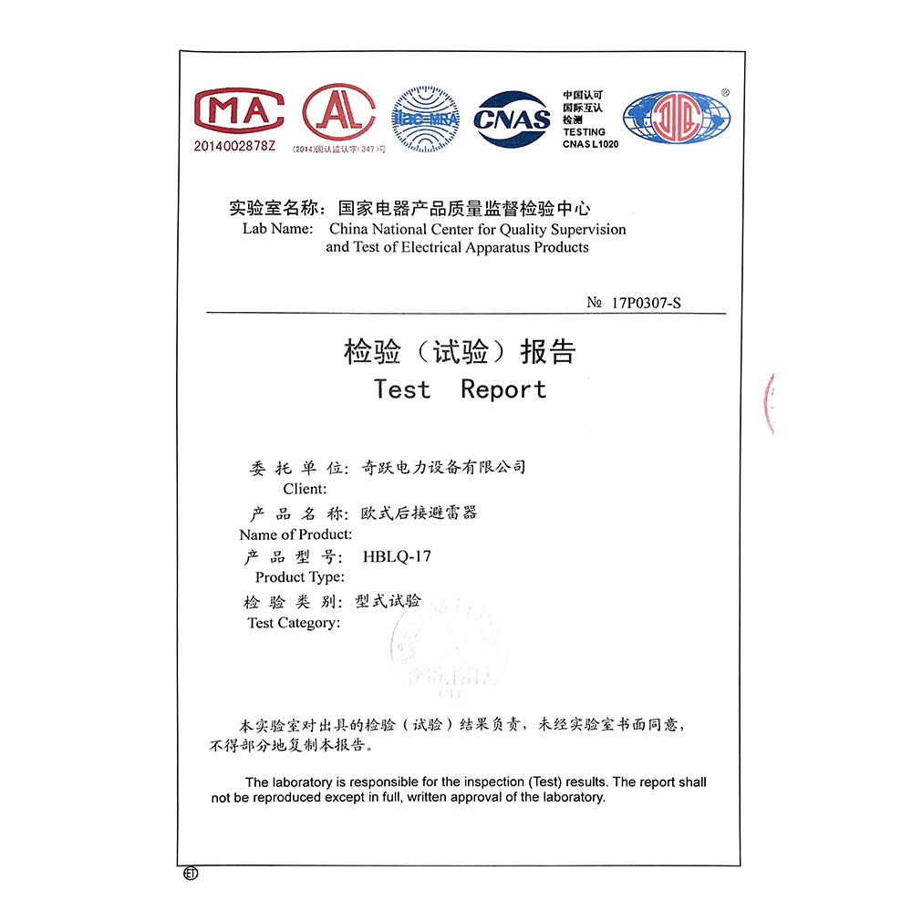HBLQ-17欧式后接避雷器 检验报告