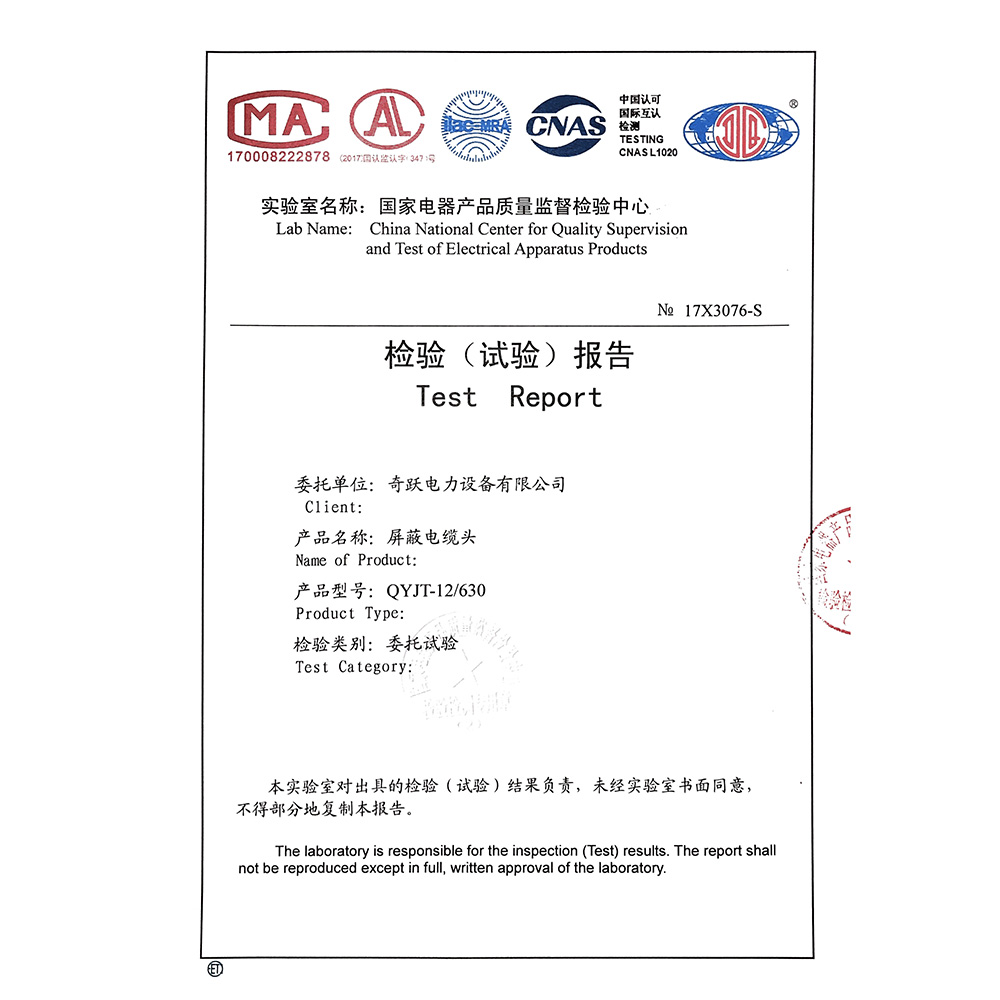 QYJT-12/630屏蔽电缆头 检验报告