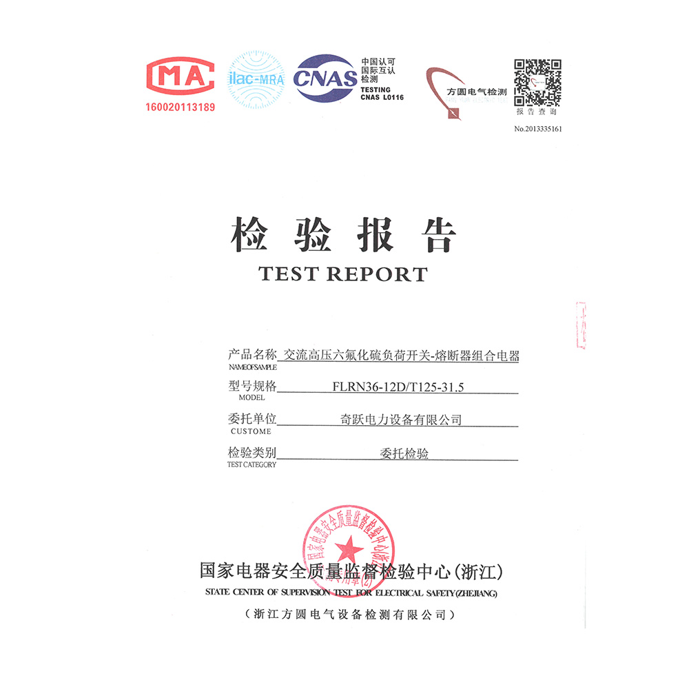 FLRN36-12D/T125-31.5交流高压六氟化硫负荷开关-熔断器组合电器 检验报告