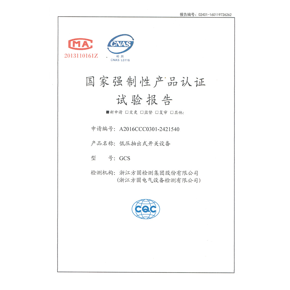 GCS低压抽出式开关设备 检验报告