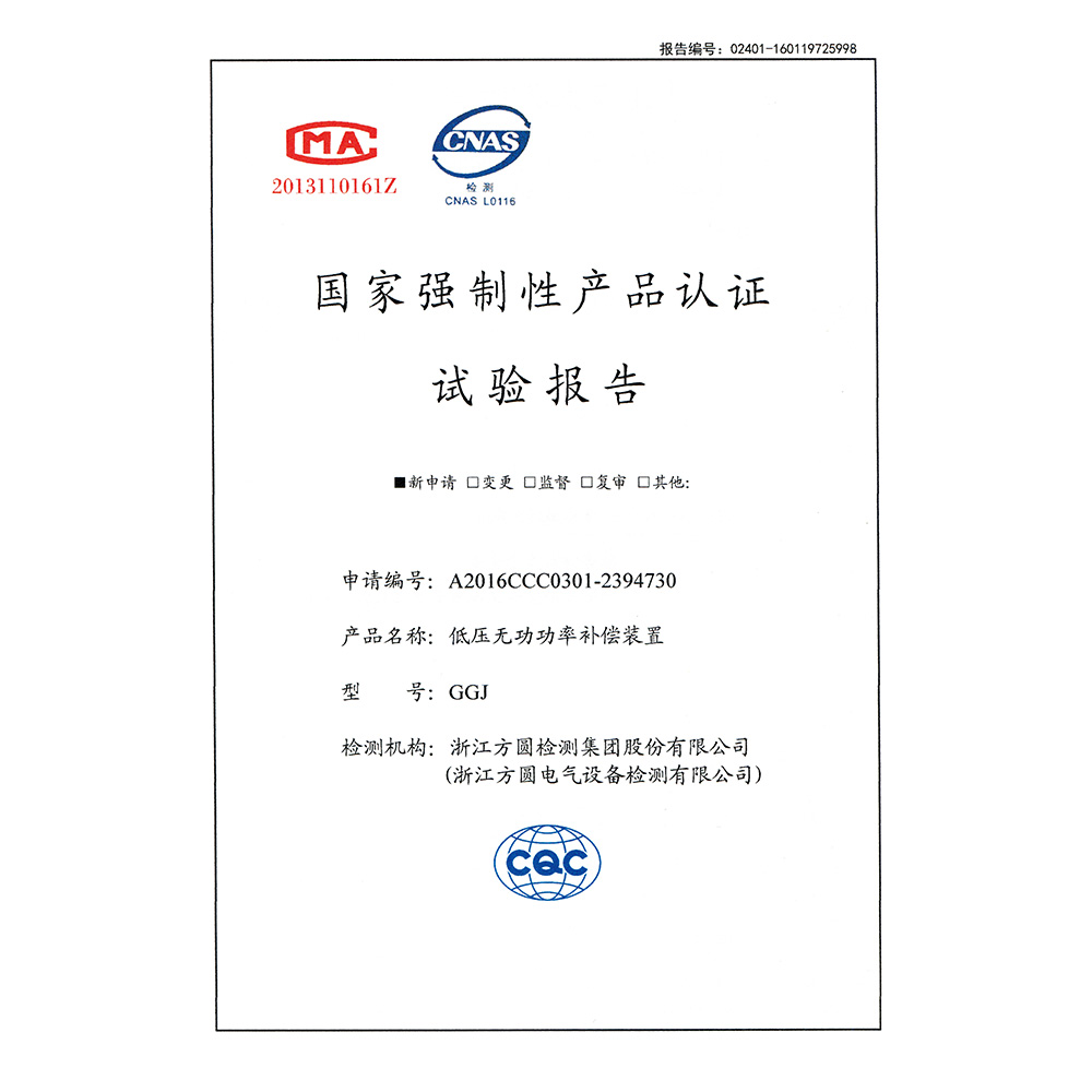 GGJ低压无功功率补偿装置 检验报告