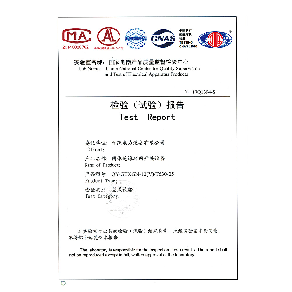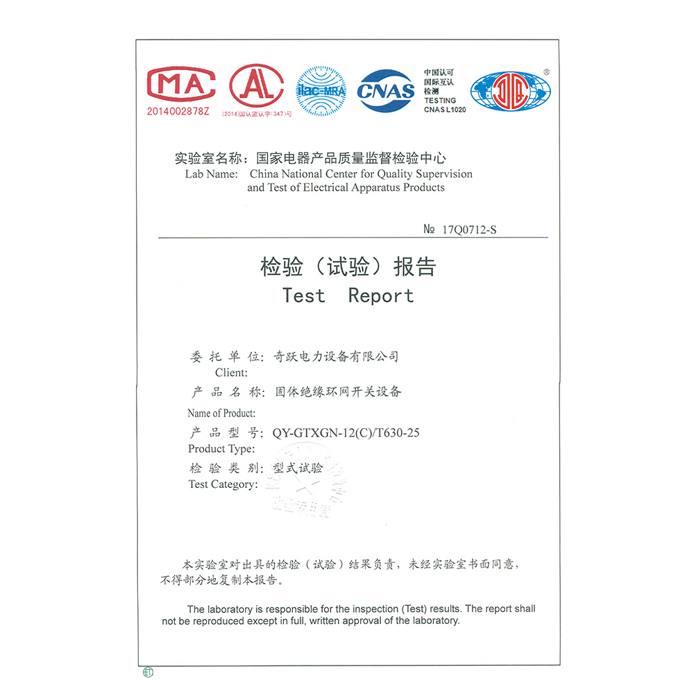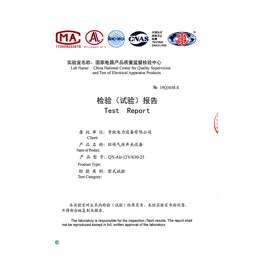 QY-Air-12V/630-25环保气体开关设备 检验报告