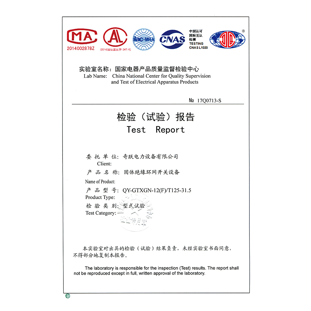 QY-GTXGN-12(F)/T125-31.5固体绝缘环网开关设备 检验报告