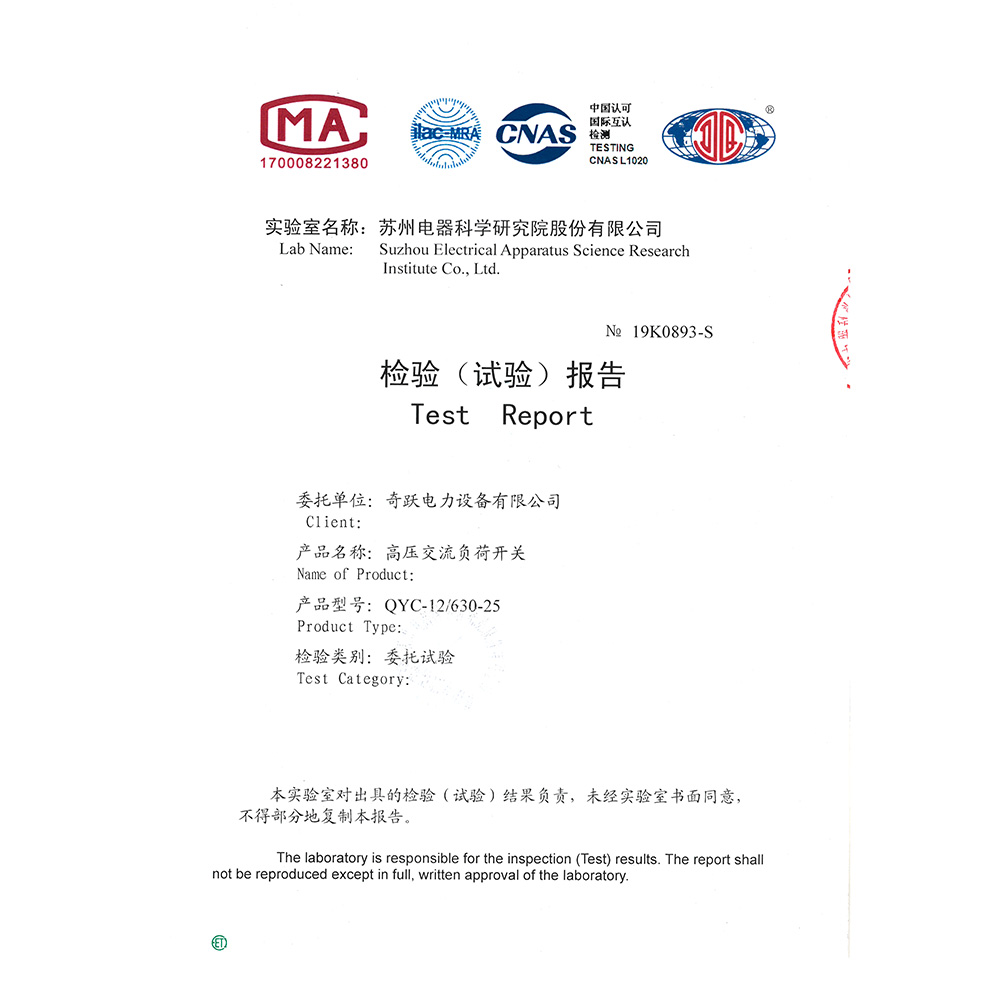 QYC-12/630-25高压交流负荷开关 检验报告